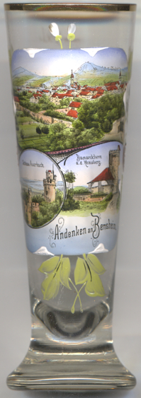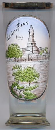 Two ships of the German Imperial Navy, as well as a battleship from the World War II era, were named after him. Also named in his honour were the Bismarck Sea and Bismarck Archipelago (both near the former German colony of New Guinea), as well as Bismarck, the state capital of North Dakota. Numerous statues, monuments and so-called 'Bismarck towers' were erected in his honour. The following glasses in this collection show some of these monuments: